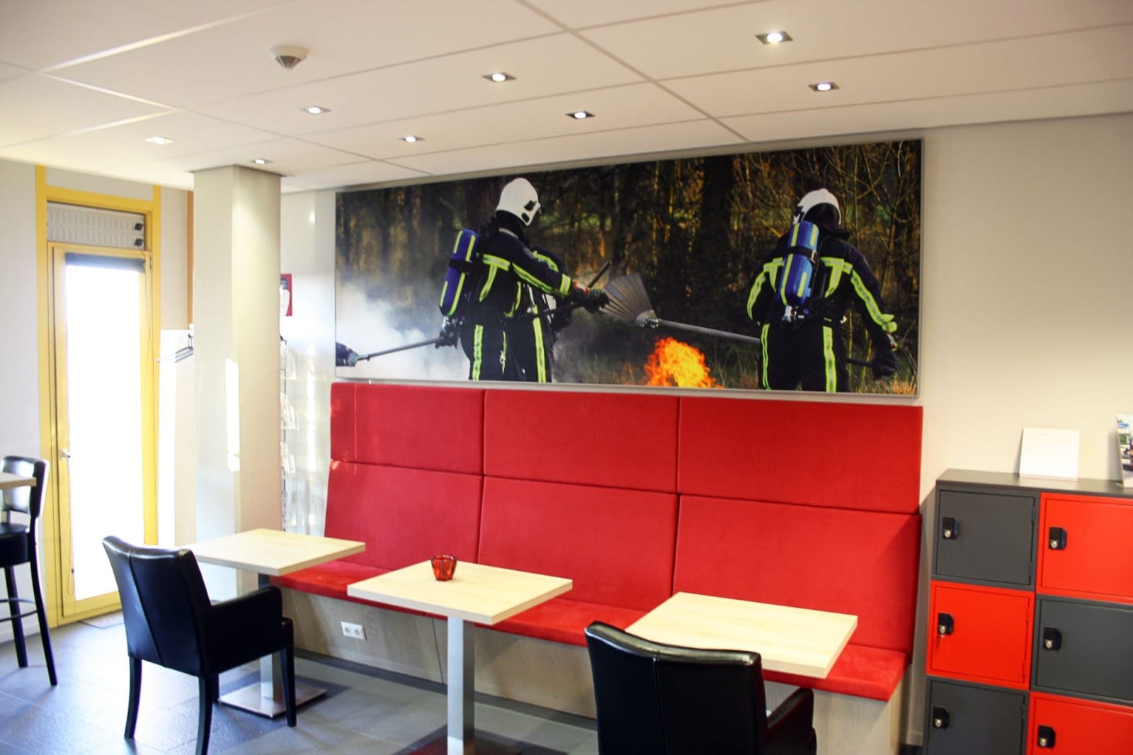 Op de begane grond bevinden zich de kleedkamers, douches, werkplaats en opslagruimten. Op de tweede verdiepingen bevinden zich kamers voor de brandweermannen en op de derde verdieping kantoren. In de oostvleugel zijn een receptie en vergaderzalen ondergebracht.