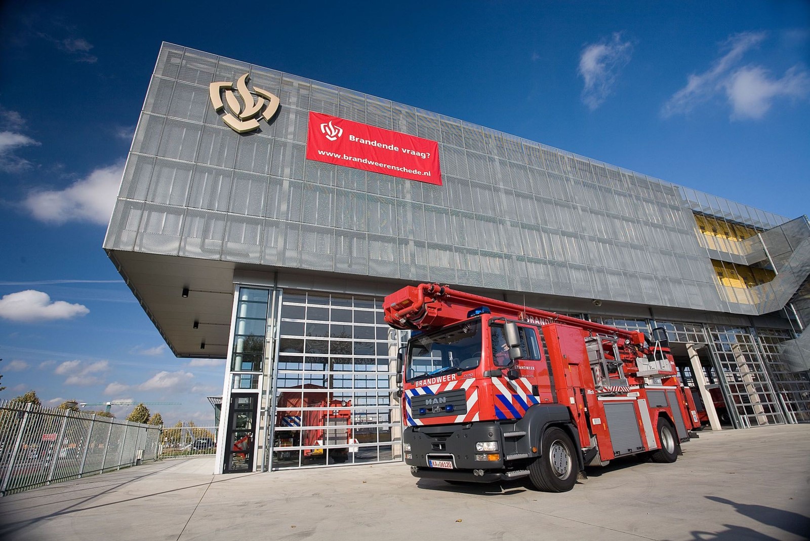 In 2007 betrok de Brandweer van Enschede een nieuw hoofdstation aan de Zuiderval, de ‘Post Spaansland’. Het gebouw is volgens het beeldkwaliteitplan van dit gebied zeer transparant vormgegeven, naar een ontwerp van Philippe Samyn. Architectenbureau Samyn en Partners is een vooraanstaand Europees architectenbureau dat technisch innovatieve en duurzame gebouwen ontwerpt. Kenmerkend voor het werk van Samyn zijn de ‘dubbele wanden’, die we ook terugzien in het ontwerp van de brandweerkazerne.