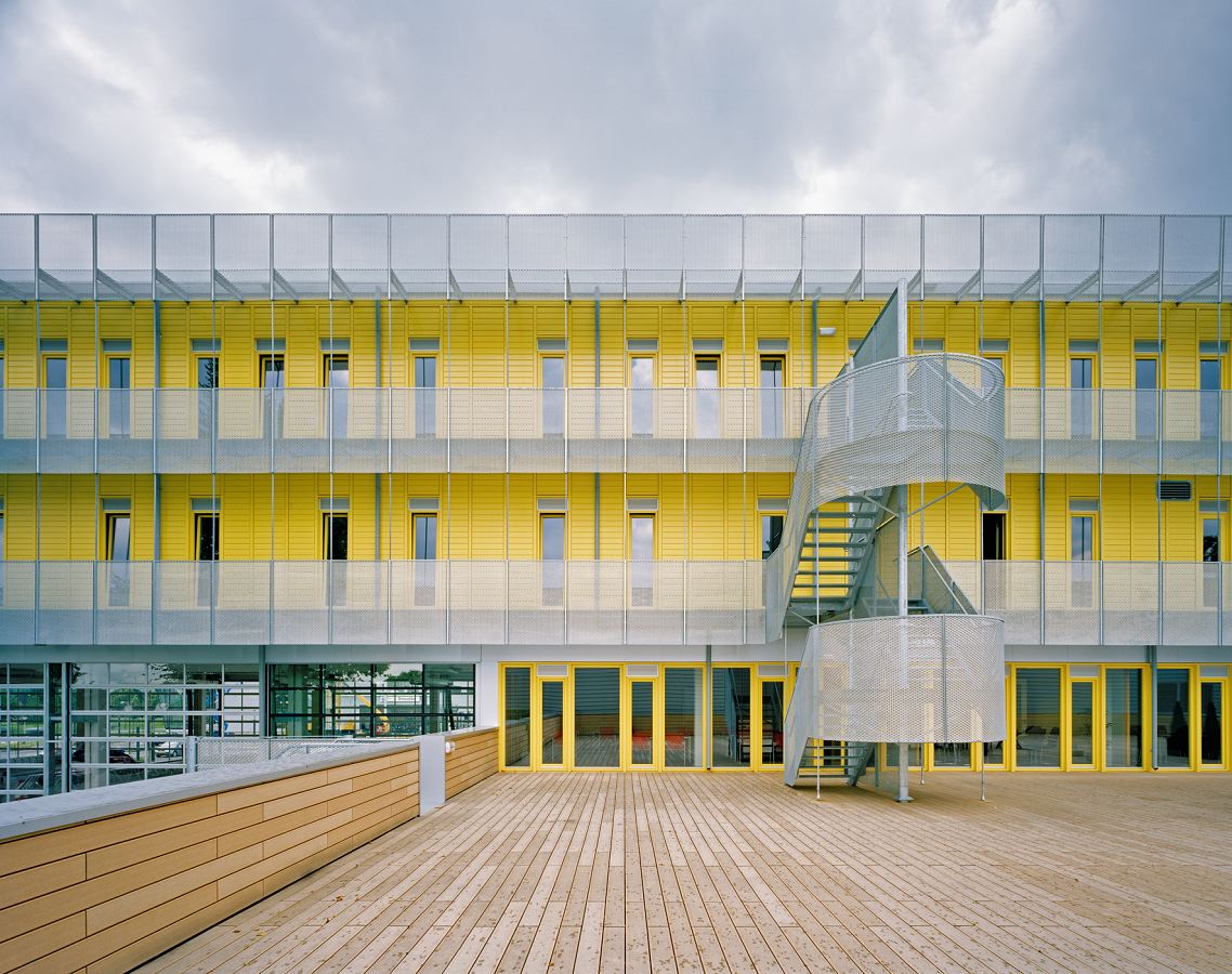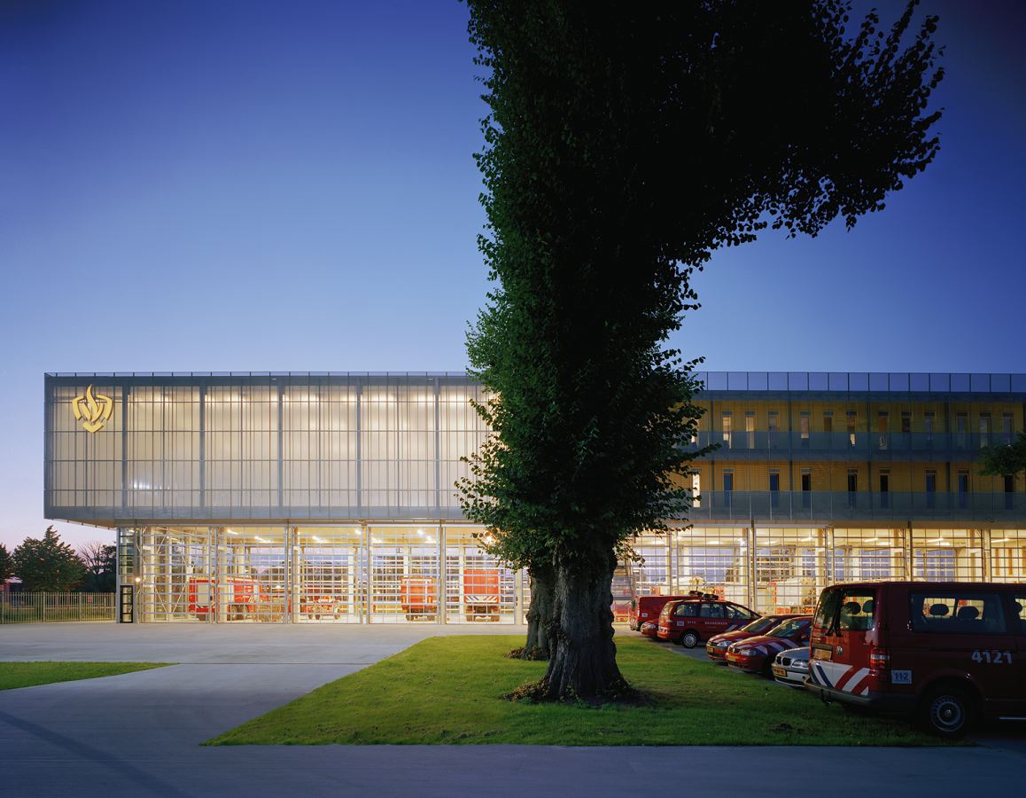 Het nieuwe hoofdstation is een eenvoudig, rechthoekig gebouw met een L-vormige plattegrond. Het hoofdvolume aan de noordzijde telt vier verdiepingen, de lagere vleugel strekt zich uit langs de oostzijde. Waar de twee vleugels samenkomen bevindt zich de entree. De begane grond van het hoofdvolume is twee verdiepingen hoog en is geheel opgetrokken in glas. Deze ruimte biedt plaats aan dertien brandweerauto’s, die goed zichtbaar zijn vanaf de straat. De tweede en derde verdieping hebben een houten gevel en zijn voorzien van balkons die rond het gebouw lopen. Deze beschutten het hout tegen neerslag en vormen tegelijkertijd een snelle vluchtweg. Op de noordwesthoek is een transparante sporthal van twee verdiepingen geplaatst, waarin zich een basketbalveld bevindt. De lange voorgevel wordt doorbroken door een verticaal geplaatste glazen doos, waarin zich het hoofdtrappenhuis en de brandweer glijpaal bevinden. De lage zijvleugel is bekleed met aluminium panelen.