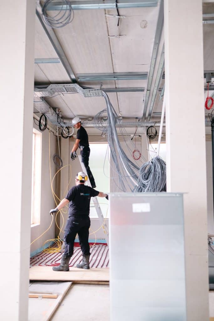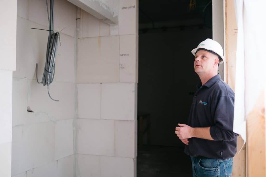 Dat denkwerk betekent vooral: anticiperen en slim voorbereiden. Overal waar straks (mogelijk) een elektrische aansluiting nodig is, is nu al een pijpje of aansluiting gelegd. Kabels voor bijvoorbeeld de verlichting van het fietsenhok zijn al door de muur gebracht, zodat de metselaar zijn werk mooi kan afronden zonder later nog te hoeven boren. Ook in de vloeren zit alles verwerkt. Zo kan het gebouw strak en netjes worden afgewerkt, zonder achteraf veel extra werk. Efficiënt, slim én mooi.