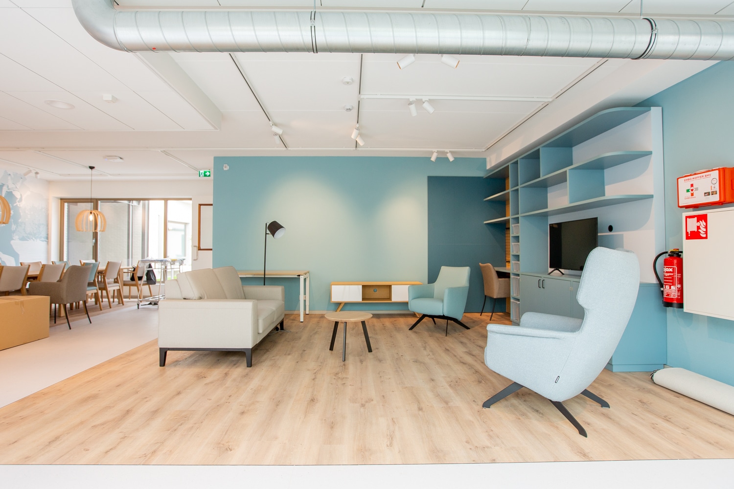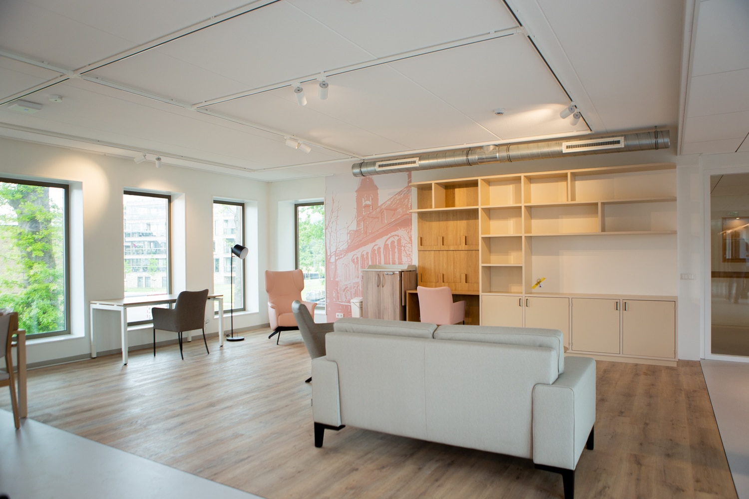 In het interieur wordt aandacht besteed aan het comfort en de herkenbaarheid voor de cliënten. De ontsluitingsgangen zijn ontworpen als ‘kloostergang’, dat wil zeggen als overdekte omloop met een directe relatie met de aanliggende tuinen. Iedere individuele kamer heeft naast de voordeur een vitrinekast gekregen waarin persoonlijk objecten van de bewoner opgesteld kunnen worden. Zo wordt de herkenbaarheid van de kamers vergroot. In de individuele kamers is er een zekere mate van inrichtingsflexibiliteit waardoor de kamers gemakkelijk gepersonaliseerd kunnen worden. De gemeenschappelijke woonkamers zijn uitwisselbaar qua functionaliteit, maar ze onderscheiden zich door een verschillende uitstraling en kleurstelling.