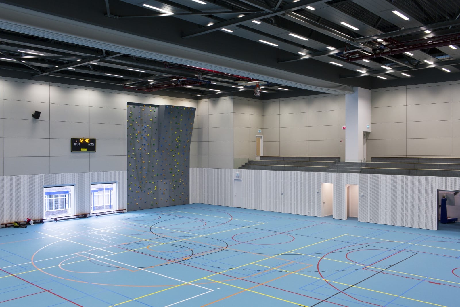 | Nieuwbouw Onderwijspark Ezinge te Meppel. In het gebouw zijn meerdere participanten gehuisvest. Drenthe College biedt middelbaar beroepsonderwijs aan, Stad en Esch praktijkonderwijs, Havo en VWO en De Ambelt speciaal onderwijs. Daarnaast wordt een groot sportcomplex gerealiseerd, welke voldoet aan alle eisen van NOC-NSF. Diverse functies worden in het onderwijsgebouw gerealiseerd; onderwijs, sport, kunst- en muzieklokalen, dans- en theaterzaal, practicumlokaal en diverse praktijklokalen onder andere voor de techniek en horeca. Er is veel aandacht besteed aan een gezond klimaat door toepassing van frisse scholen klasse A. In het gebouw is een WKO-installatie in combinatie met warmtepomp toegepast en voor de vereiste luchtverversing voorzien in mechanische toe- en afvoerlucht in combinatie met warmte-terugwinning en CO2-regeling. Voor het beperken van interne warmtelast worden energiezuinige armaturen toegepast met een daglichtregeling en een aanwezigheidsdetectie. Tevens wordt gebruik gemaakt van nachtventilatie en is voorzien in buitenzonwering. |
